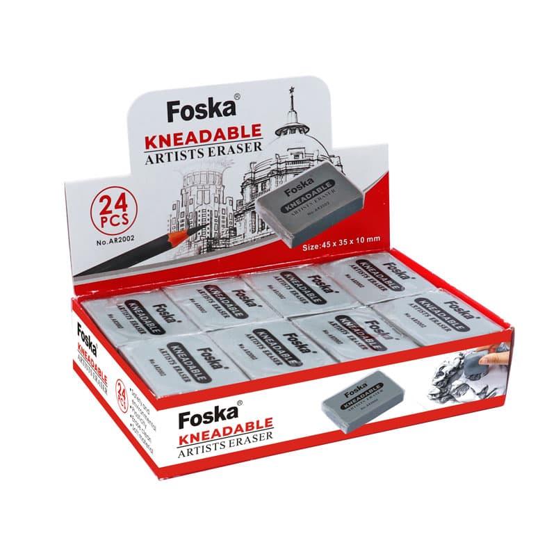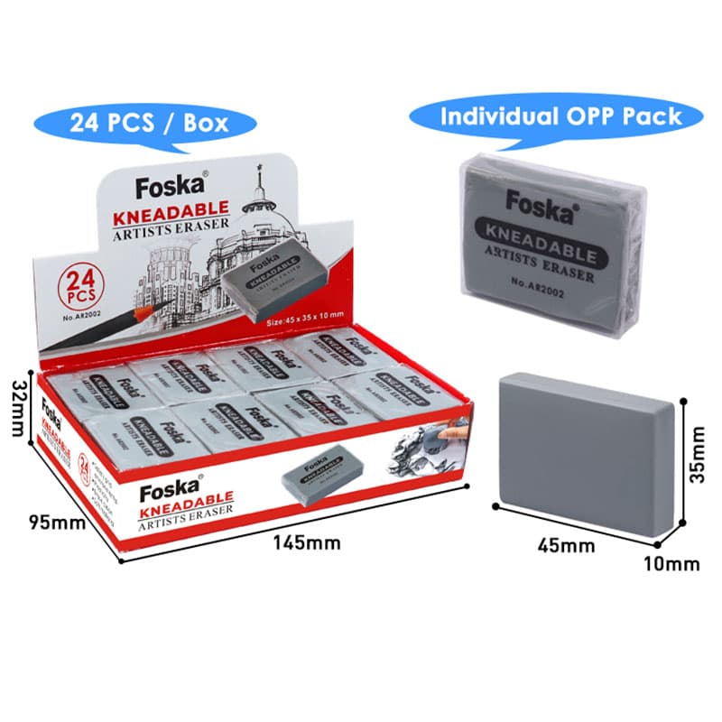 ممحاة فنية مصنوعة من مواد صديقة للبيئة، وهي آمنة، عديمة الرائحة، ناعمة، مقاومة للفتات، وقابلة للتشكيل بسهولة.