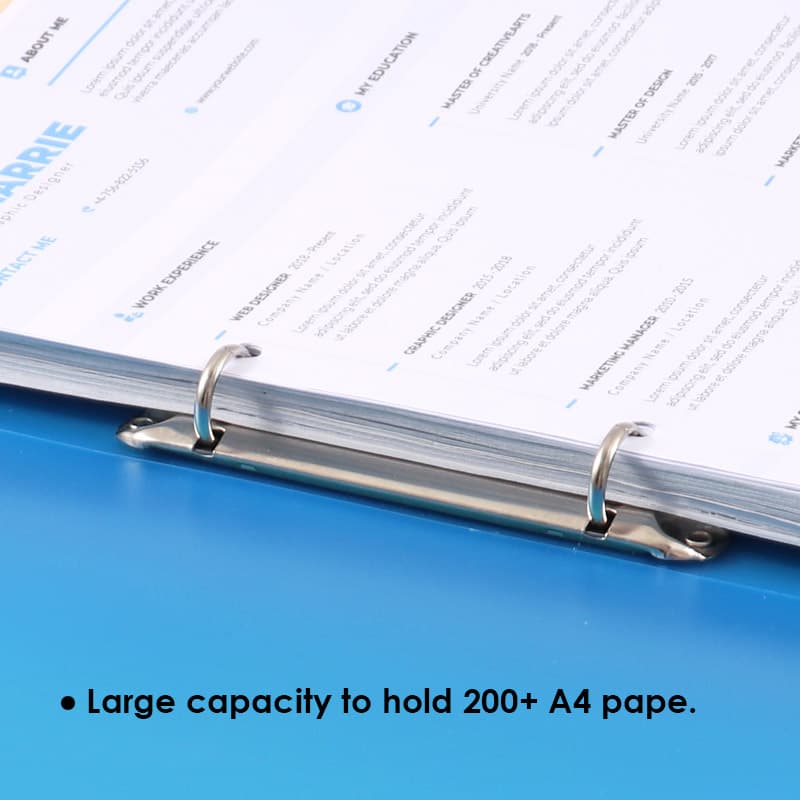 ملفنا ذو الحلقتين مع غطاء خارجي متين يحمي المستندات من التآكل والتلف، وهو خيار مثالي للتصنيف الفعال في المكاتب المزدحمة أو الفصول الدراسية أو للاستخدام الشخصي في المنزل.