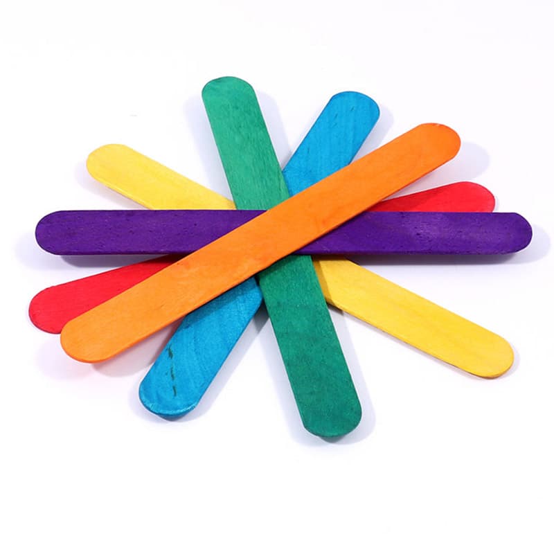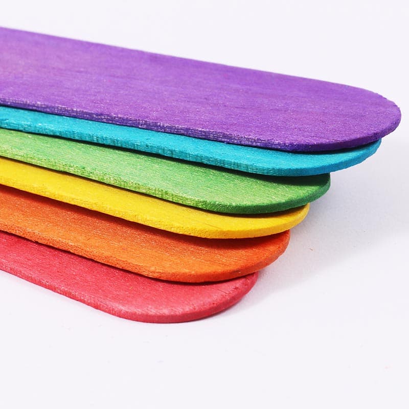 Each wooden stick flaunts vivid colors like red, orange, yellow, green, blue, and purple, making your crafts eye-catching.