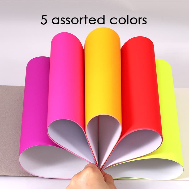 Bright fluorescent paper stands out vividly, ensuring your messages or creations are noticed easily. The eye-catching colors, such as neon pink, green, orange, and yellow, command attention, making them ideal for signage, notices, art projects, and decorations.