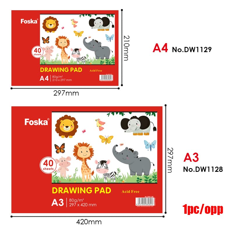 لوحة رسم فوسكا A4 A3 مصنوعة من ورق صديق للبيئة. تحتوي على 40 ورقة، مثالية للرسم والتلوين والتخطيط. المنتج مطابق لمعايير شهادة EN71، مما يضمن الامتثال للوائح السلامة الصارمة للاتحاد الأوروبي، مما يعزز القيمة من خلال ضمان الوصول إلى السوق.