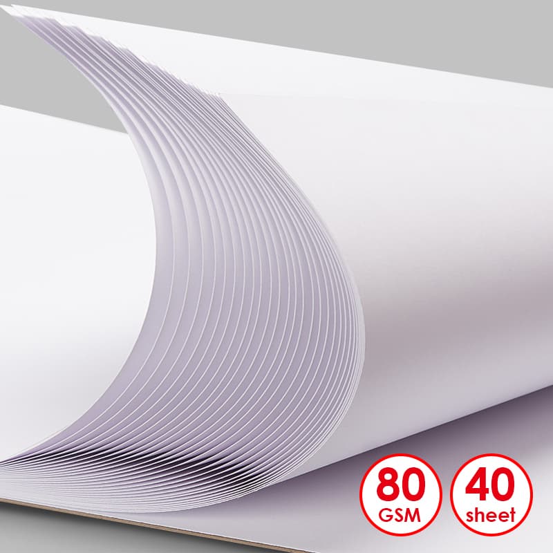 40 sheets, size: A3/A4, weight: 80gsm, cover 150gsm coated paper, back cover 300gsmوسم :