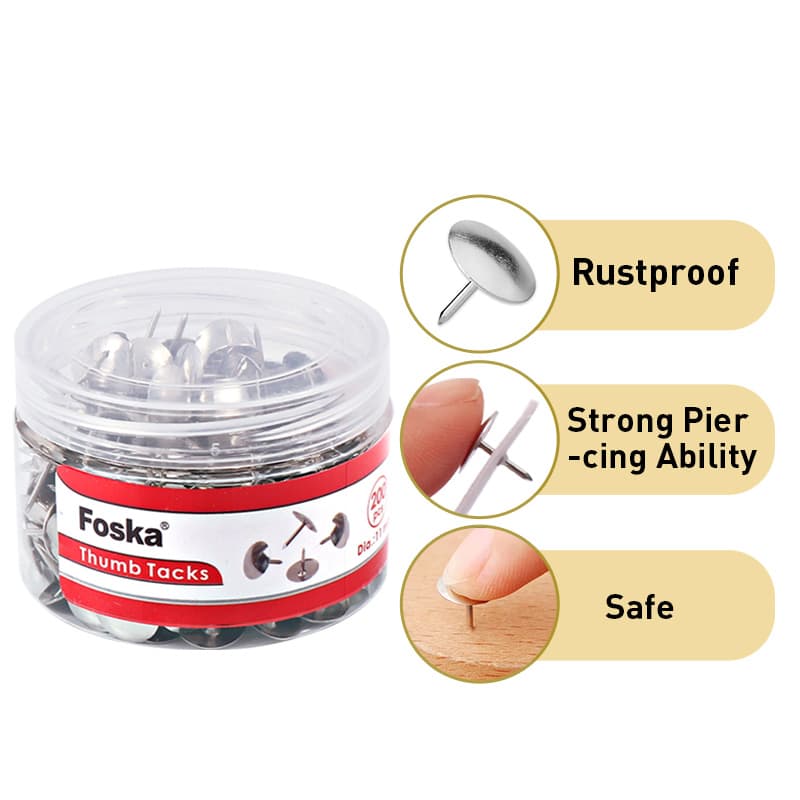 Our premium nickel-plated thumbtacks are crafted with sturdy steel and a smooth anti-rust nickel finish, delivering long-lasting durability and corrosion resistance for daily office use. Each tack features a sharp precision tip for easy insertion into cork boards, bulletin boards, wooden panels and cubicle walls, while the flat round head firmly secures documents, memos, photos, posters and maps without slipping or damaging papers.