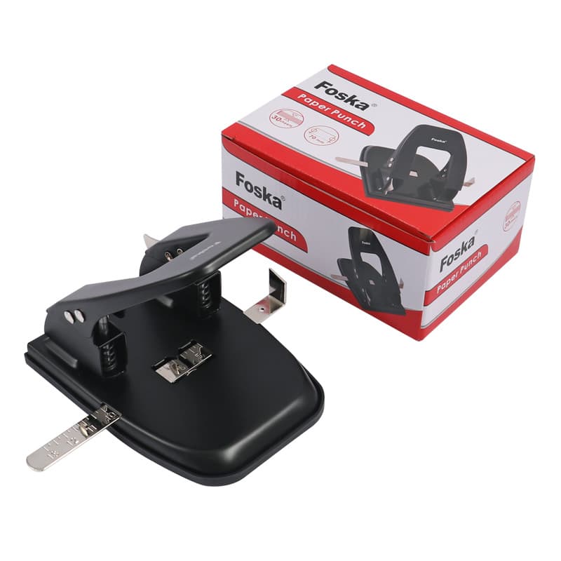 Foska Paper Punch- Experience the epitome of sophistication and functionality with our Good Quality Black Metal Paper Hole Punch. Meticulously crafted to perfection, this remarkable tool effortlessly combines style and efficiency, revolutionizing the way you organize your documents.