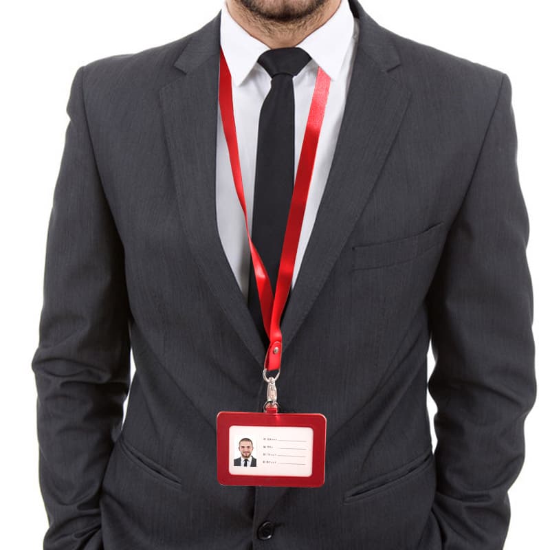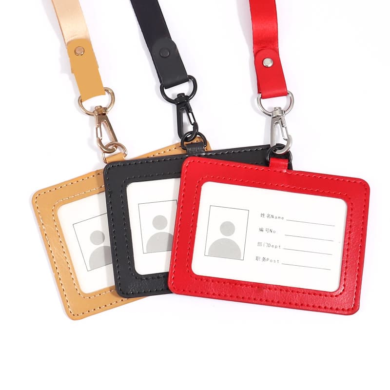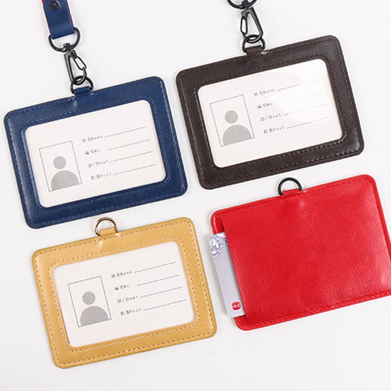 FoskaFoska Horizontal PU Leather ID Holder Badge with Lanyards