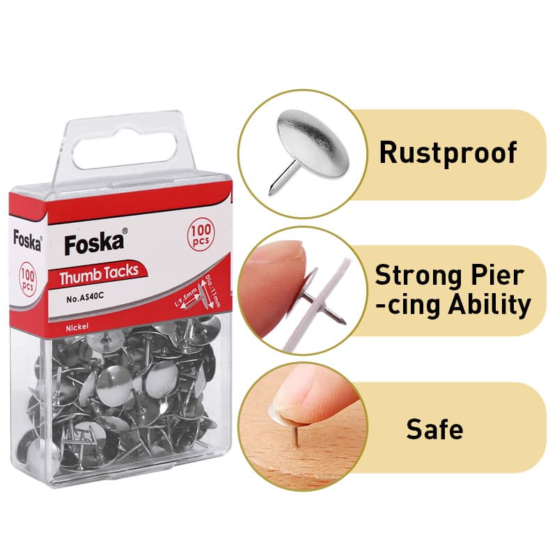 منتجنا المميز دبابيس تثبيت مطلية بالنيكل مصنوعة من الفولاذ المتين ومطلية بطبقة ناعمة من النيكل المقاوم للصدأ، مما يوفر متانة طويلة الأمد ومقاومة للتآكل للاستخدام المكتبي اليومي. يتميز كل دبوس برأس دقيق وحاد لسهولة إدخاله في ألواح الفلين، ولوحات الإعلانات، والألواح الخشبية، وجدران المكاتب، بينما يثبت الرأس المستدير المسطح المستندات والمذكرات والصور والملصقات والخرائط بإحكام دون انزلاق أو إتلاف الأوراق.
