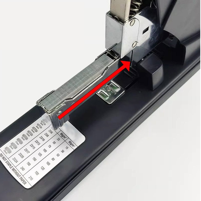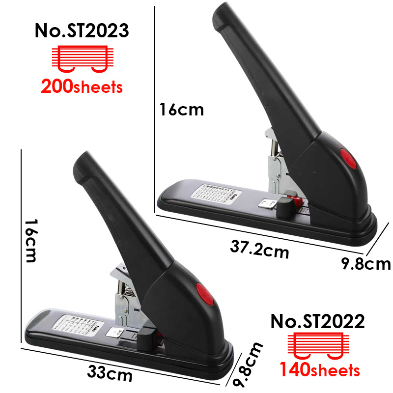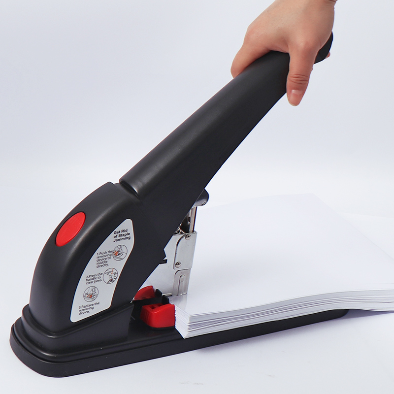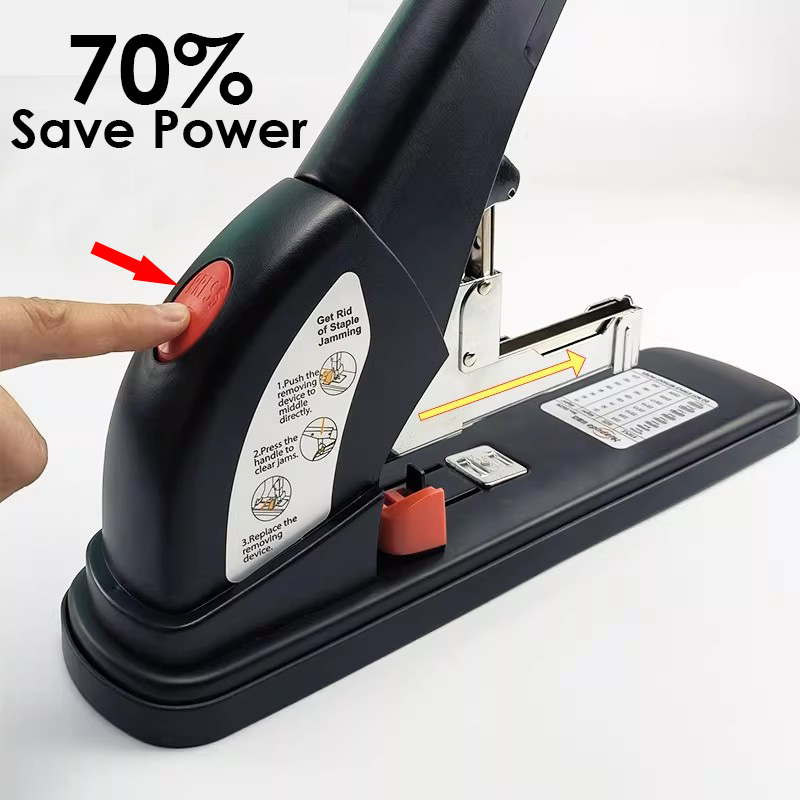 Designed for demanding office, workshop, and industrial environments, this heavy-duty stapler delivers exceptional performance and durability. Built with a robust all-metal construction (reinforced steel frame and hardened anvil), it effortlessly drives up to 100 sheets of 20 lb. paper (or 8–10 mm thick stack) in a single stroke using standard No. 10 or T50 staples (depending on model configuration). Features include: