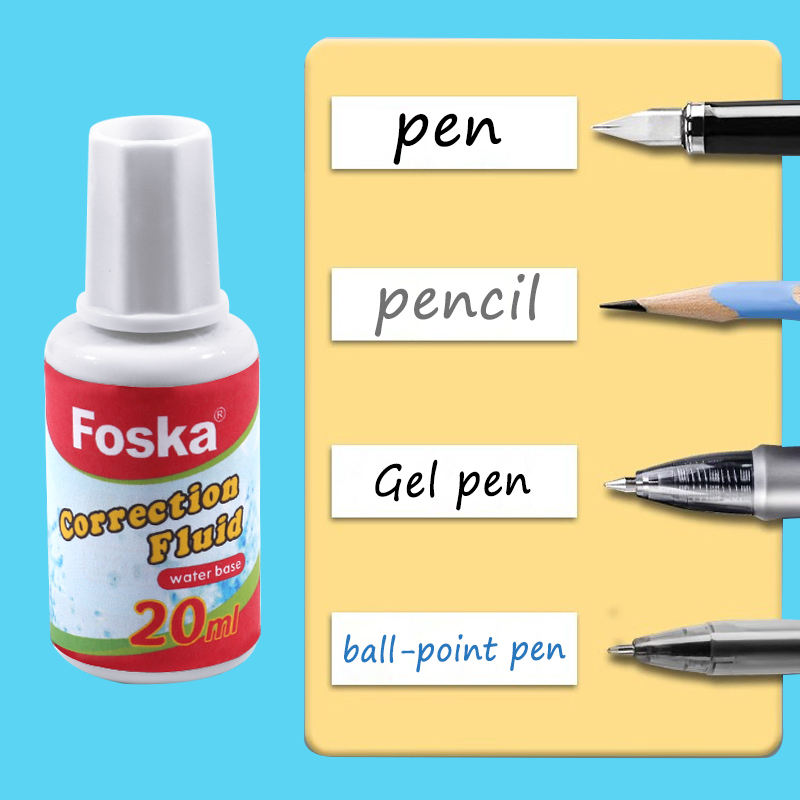 Correction Fluid--water base. Sold well in European, accepted by any shipping companies. 20ML,pen brush,