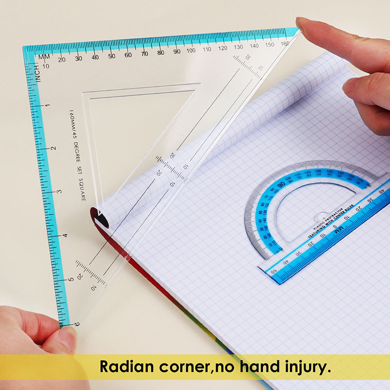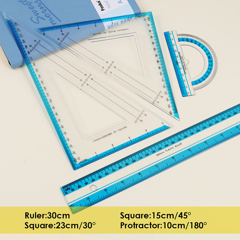 Ruler Set-Featuring dual scales, this ruler effortlessly combines both metric and imperial systems, enabling seamless conversions and ensuring utmost convenience for all your projects and exudes robust durability and longevity, ensuring that it withstands the test of time.