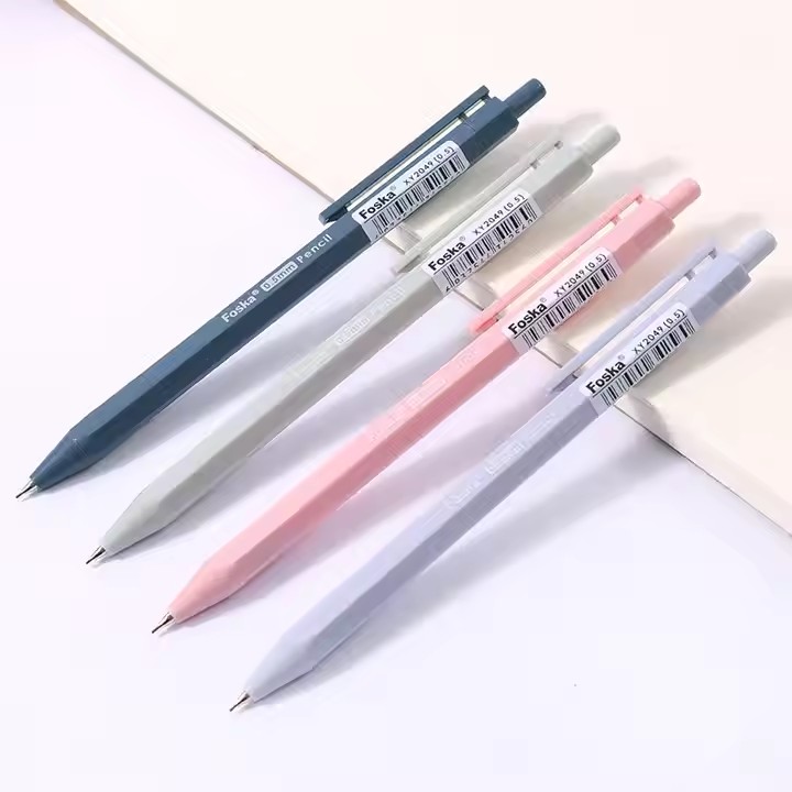 هذا القلم الميكانيكي يُسهّل الكتابة ويُقلّل من تعب اليد. متوفر بثلاثة ألوان لتختار منها، بمقاسي 0.5 مم و0.7 مم.