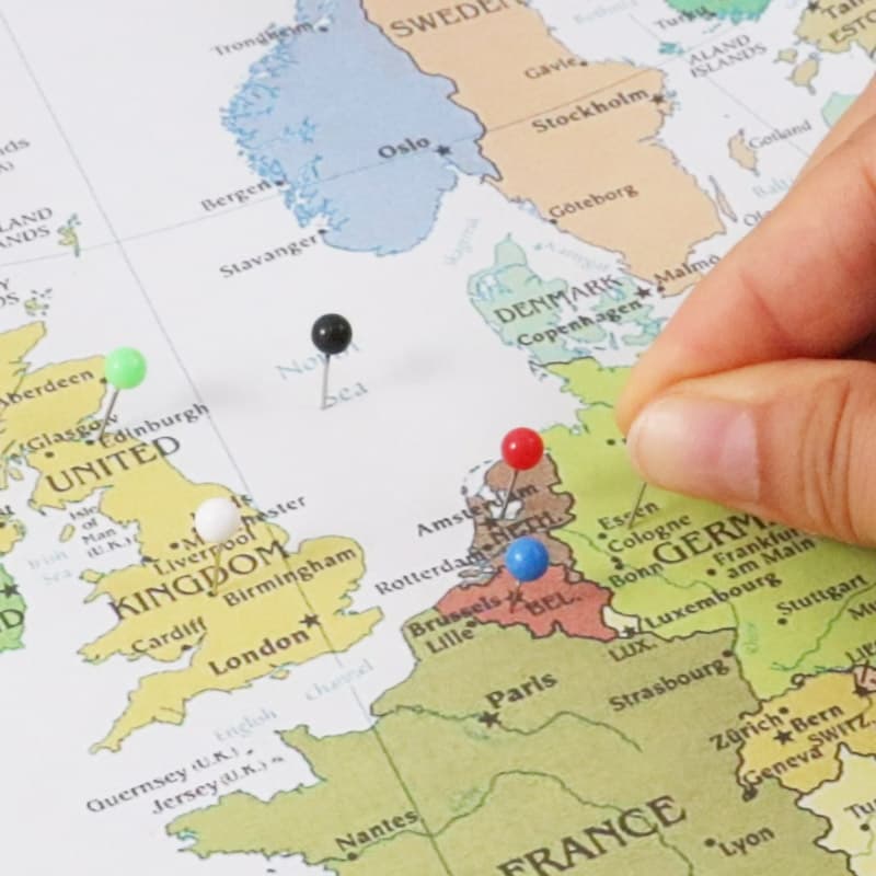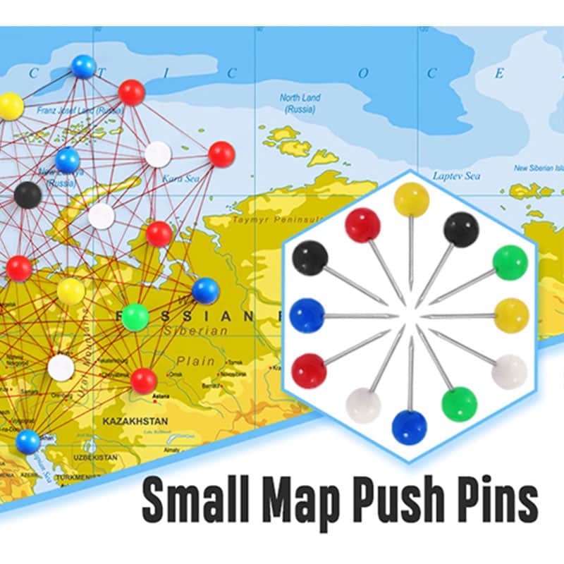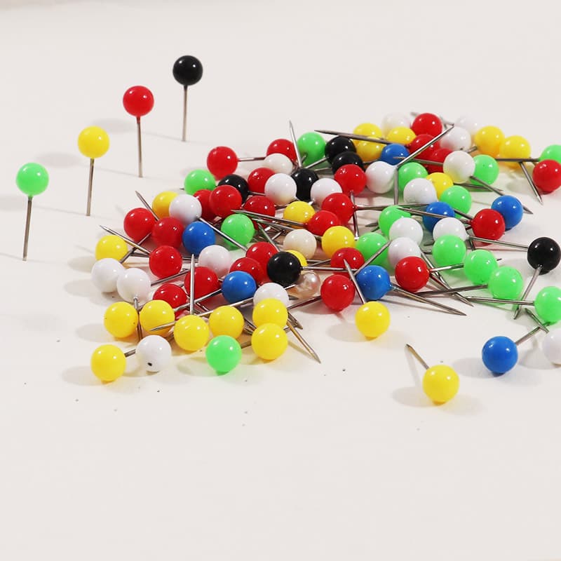 دبوس خريطة برأس دائري معبأ في صندوق شفاف